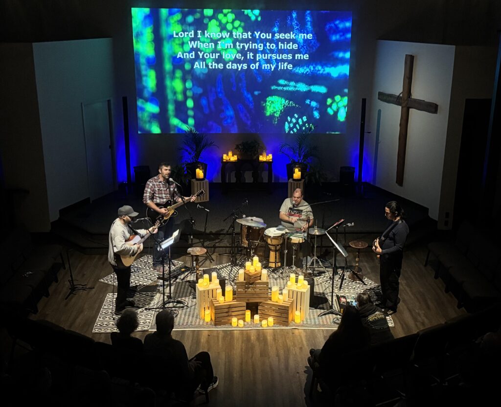 Contemporary style worship with guitar, vocals, or a larger group, followed by Bible study. Lyrics are projected for everyone to participate. Services last approximately 75 minutes plus fellowship and prayer afterward.