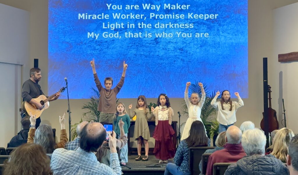 Our toddler class is open before the service. Older children stay in the Sanctuary for worship and are dismissed to their classes during announcements.